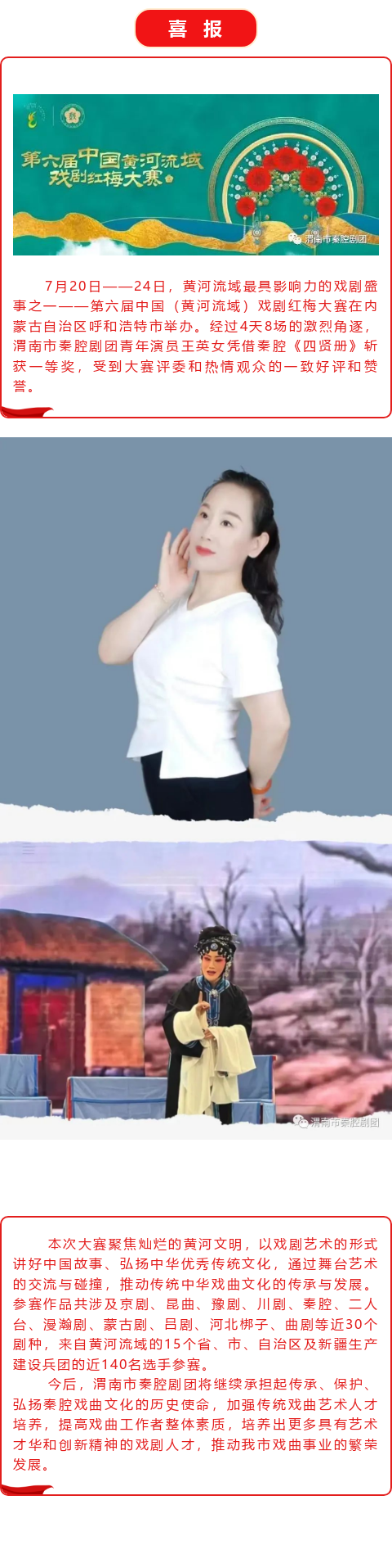 喜報|我團青年演員王英女在第六屆中國(黃河流域)戲劇紅梅大賽中斬獲一等獎!